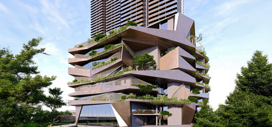 3. 60-floor biophilic tower with iconic clubhouse, 50+ amenities, and ultra-spacious, high-end residences.